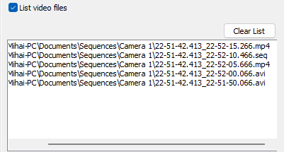 - Select file type for exported video (MP4/AVI/SEQ).